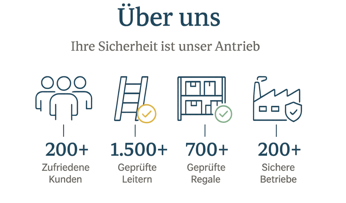 Wir kontrollieren Leitern, Tritte, Regale und Flurförderzeuge regelmäßig, damit Ihre Arbeitsmittel sicher bleiben und Unfälle verhindert werden.